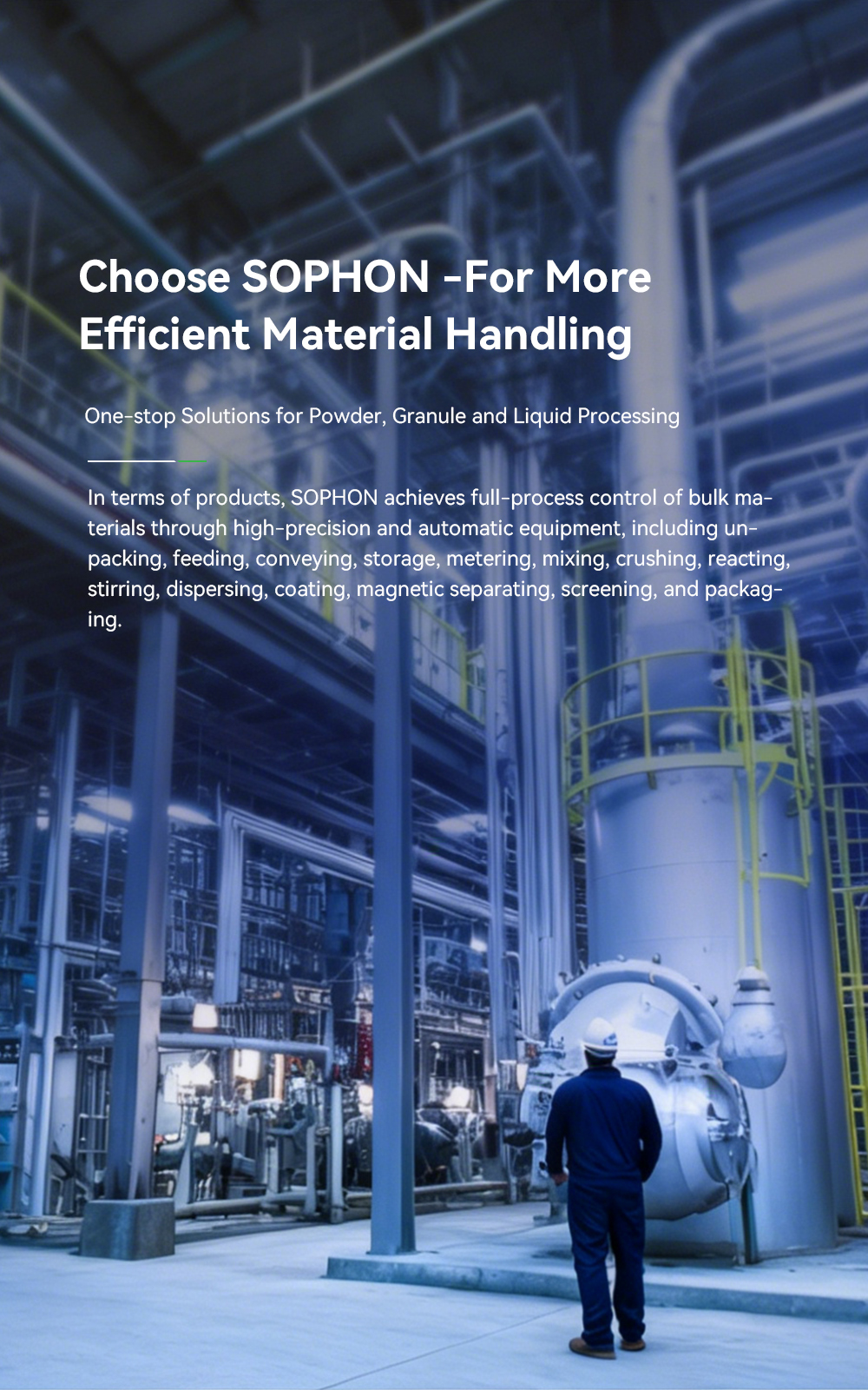 Committed to becoming a world-leading service provider of material handling technologies and upholding forward R&D philosophy in materials and processes, SOPHON provides integrated solutions for the process industry and covers service systems such as advanced design, advanced manufacturing, and advanced operation and maintenance management. Our solutions are widely applied in industries including new energy, new materials, chemicals, plastic, food, pharmaceuticals, semiconductors, petroleum, and petrochemicals.