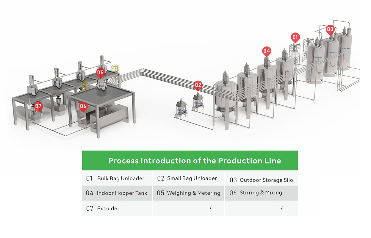 This system delivers comprehensive material handling solutions for various granular raw materials, including automated feeding, impurity removal, screening, metering, conveying, cleaning, drying and mixing. Customized system solutions are available to meet specific process requirements based on customer needs.